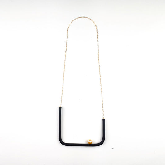 BILICO square necklace - black / gold pearl
