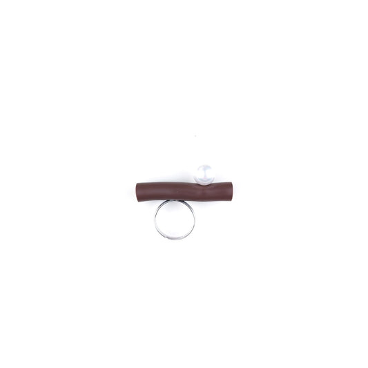 BILICO ring - brown / white pearl