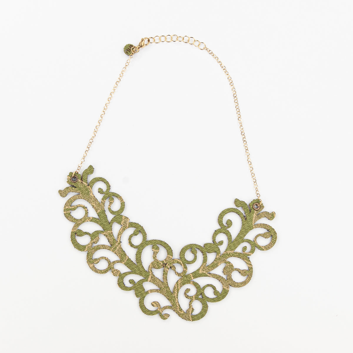 un progetto di gioielli tessili che fonde tradizione e innovazione. Ogni creazione prende vita a partire dai pregiati tessuti della storica famiglia Siciliana Gulì, un patrimonio di qualità e artigianalità. Attraverso l'uso del taglio laser, questi materiali vengono reinterpretati in chiave contemporanea, dando forma a gioielli unici, che uniscono l'eleganza del passato con il design moderno.