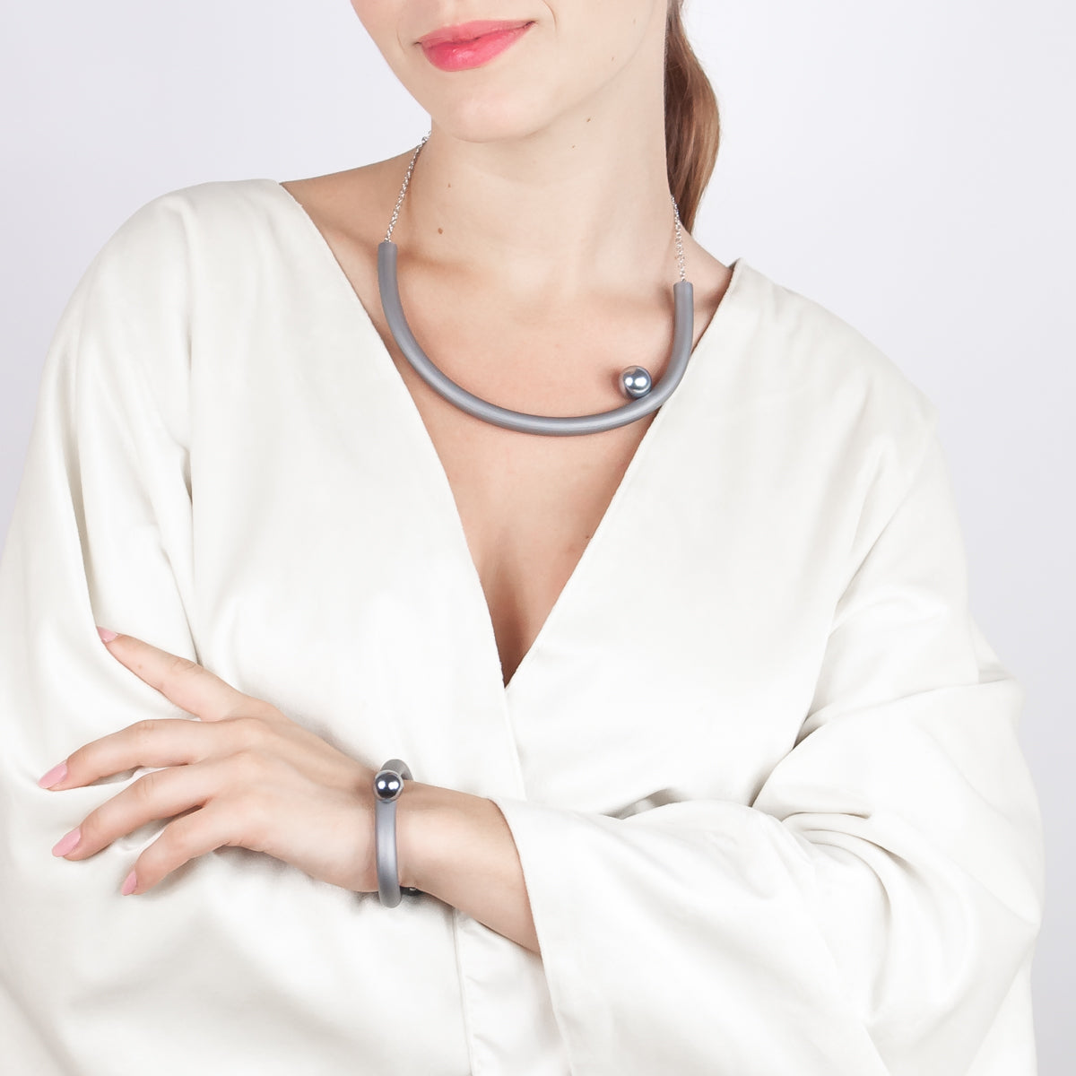 The use of a sphere in its point of balance as a visual metaphor to emphasize the concept of equilibrium which leads to harmony. A sophisticated line of contemporary jewelry with minimalist design and geometric shapes give the pieces an essentiality that exudes refined elegance.