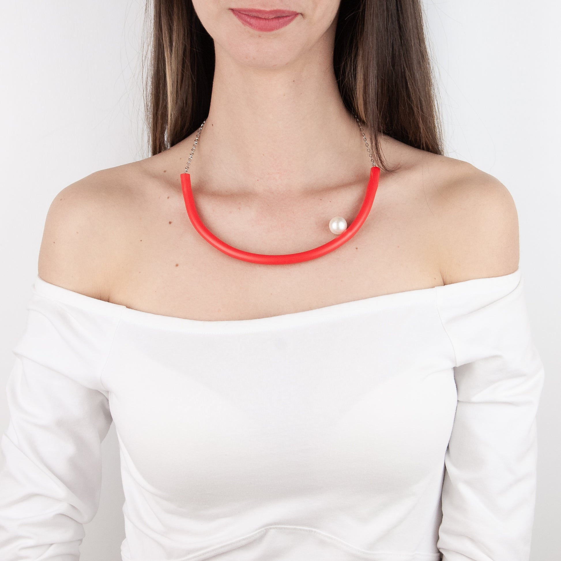 BILICO choker - orange red / white pearl