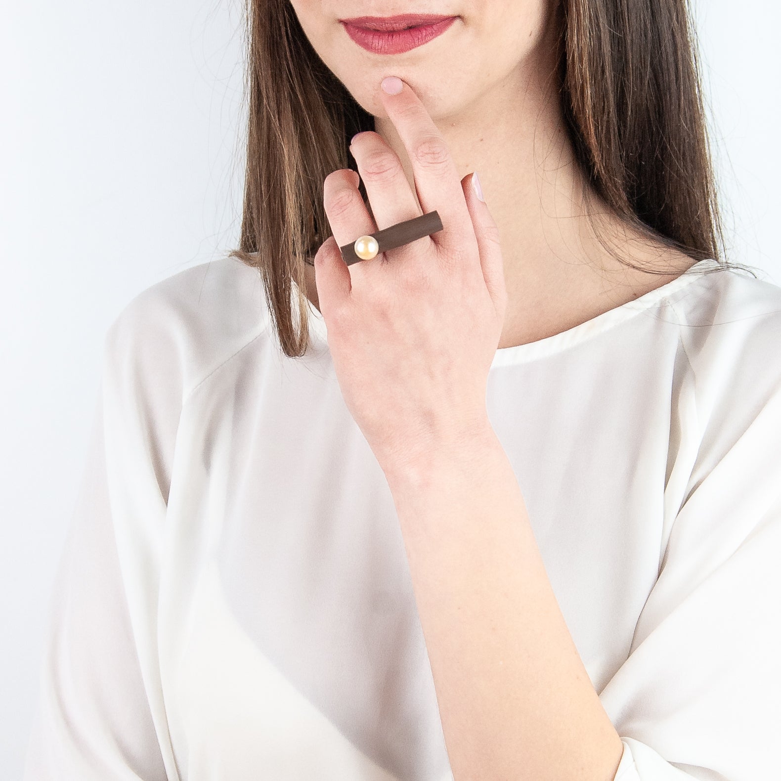 The use of a sphere in its point of balance as a visual metaphor to emphasize the concept of equilibrium which leads to harmony. A sophisticated line of contemporary jewelry with minimalist design and geometric shapes give the pieces an essentiality that exudes refined elegance.