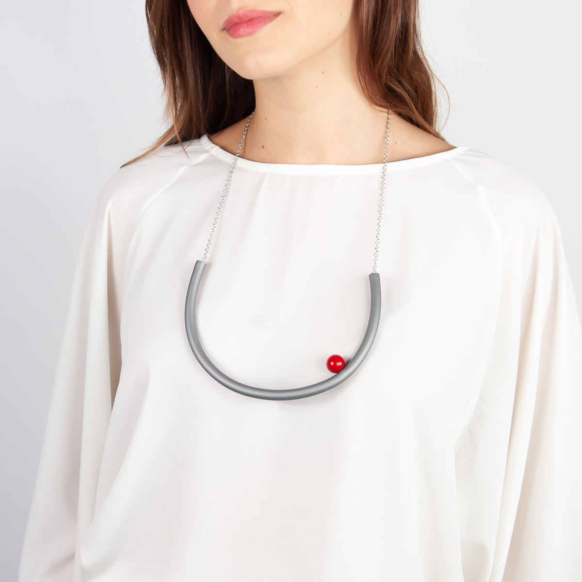 BILICO round necklace - grey / red pearl