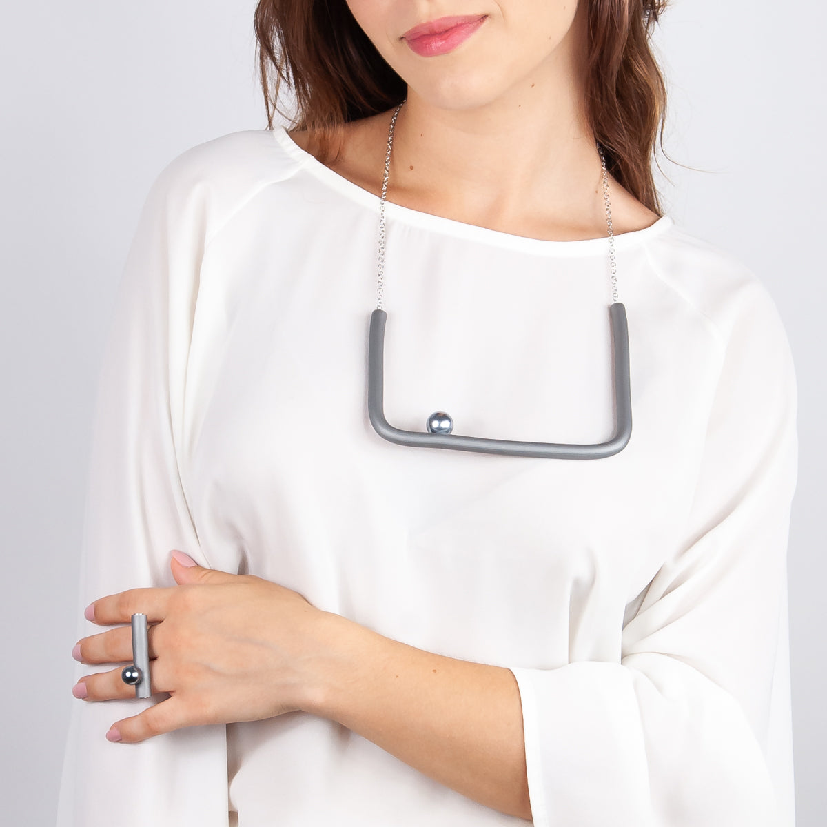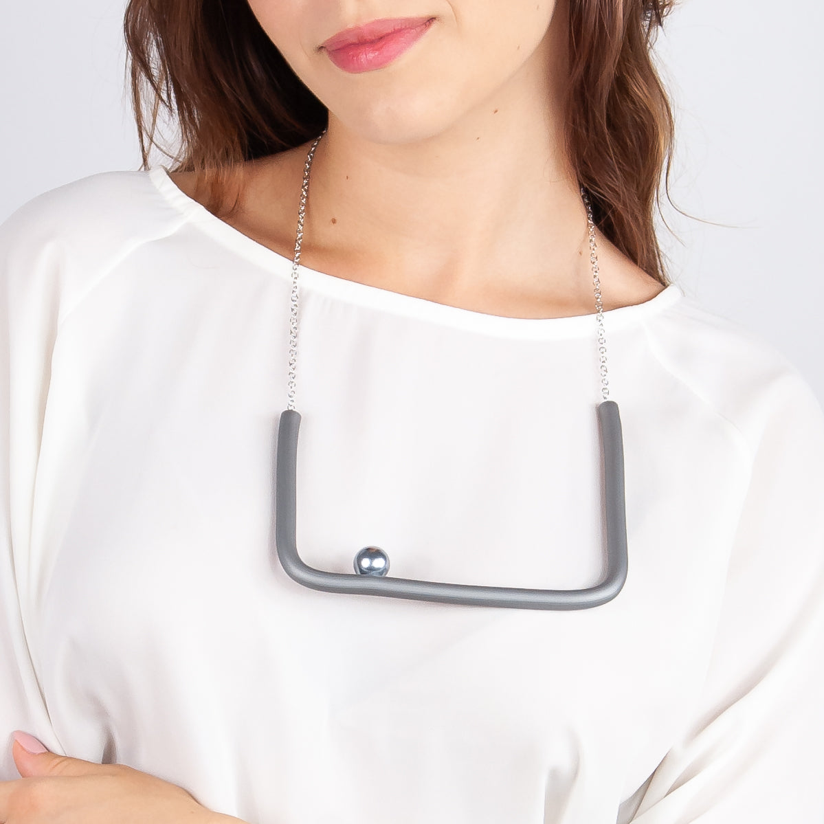 BILICO square necklace - grey / silver pearl