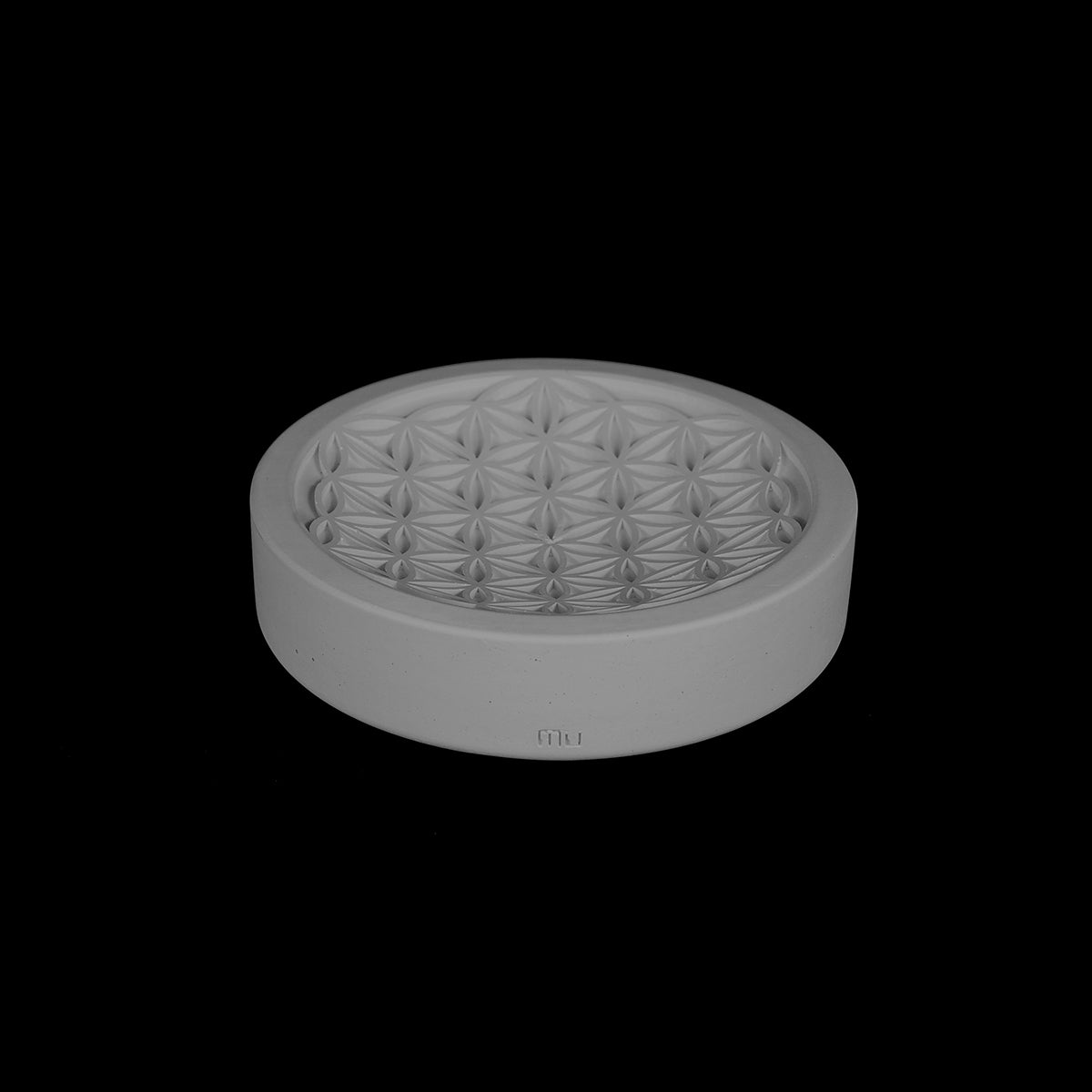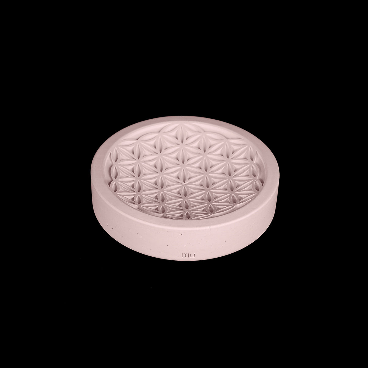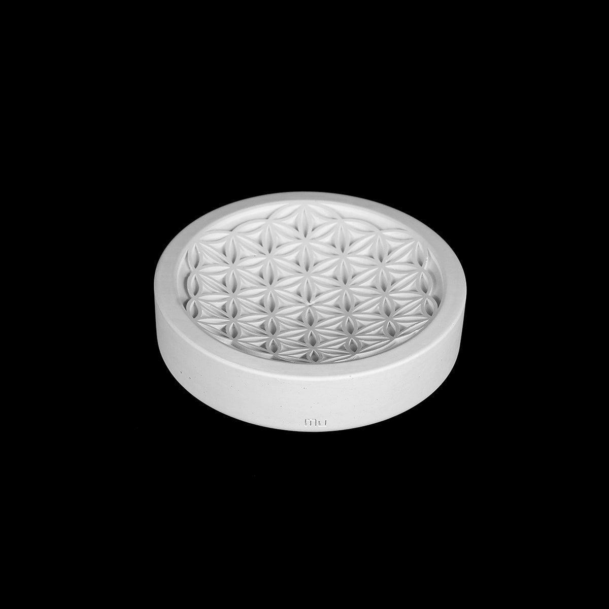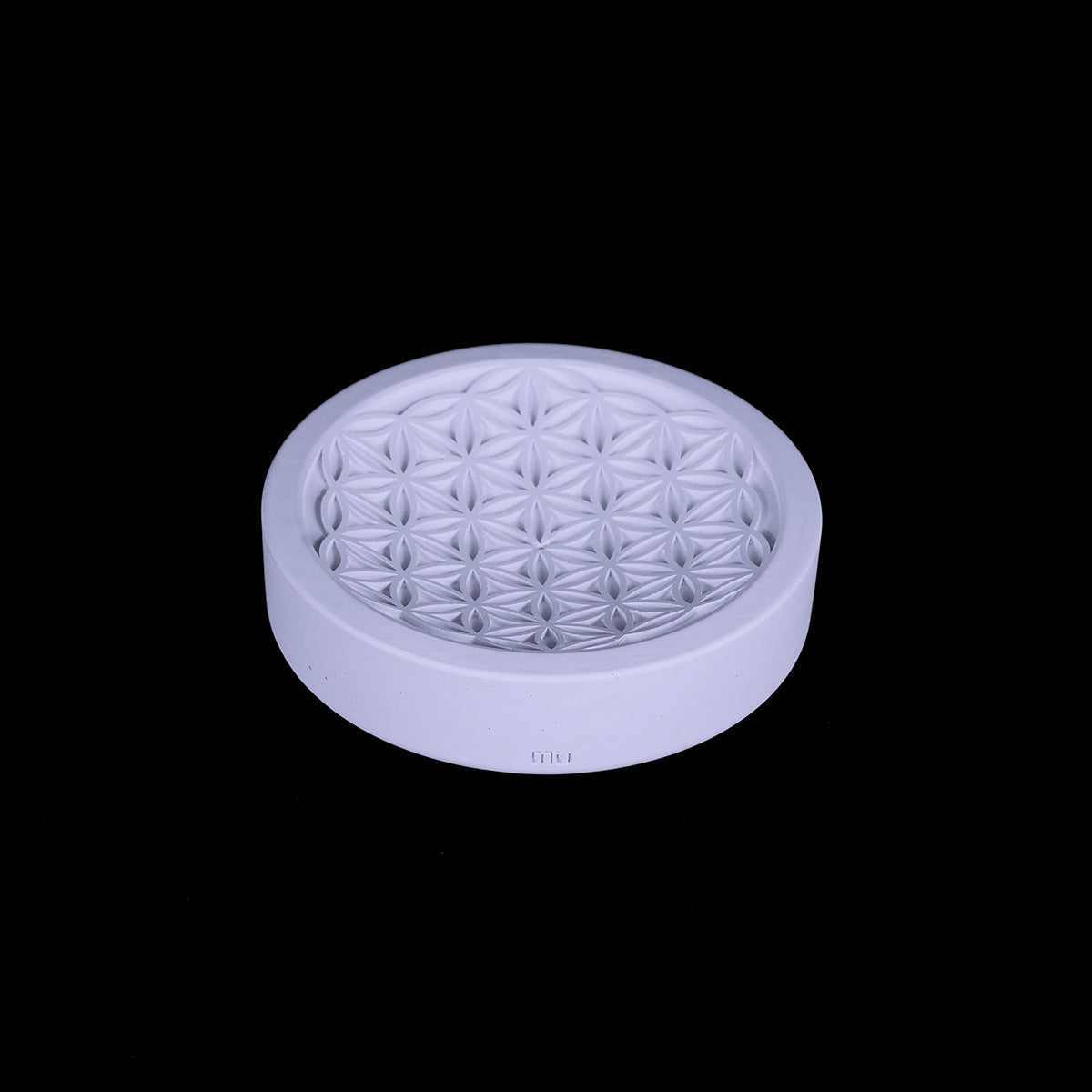 The Mandala project emerged from an in-depth exploration of sacred geometries. This collection features incense holders and tea-light holders crafted from microcement, each embodying a 'sacred order' inherent in nature. The intricate designs of the Mandala pieces reflect the balance and harmony found in natural patterns and forms.