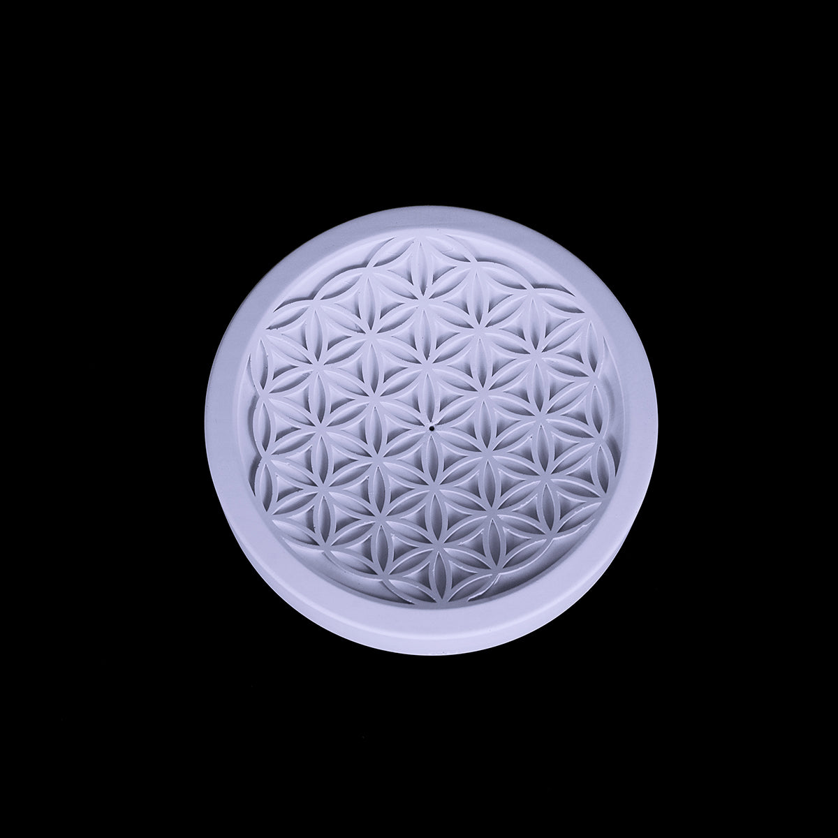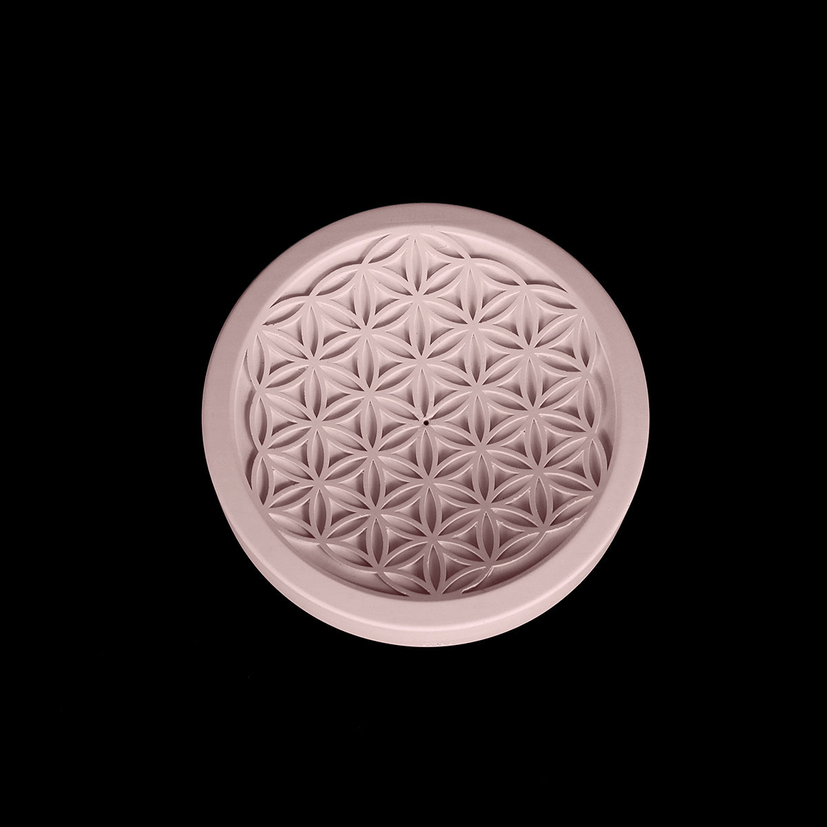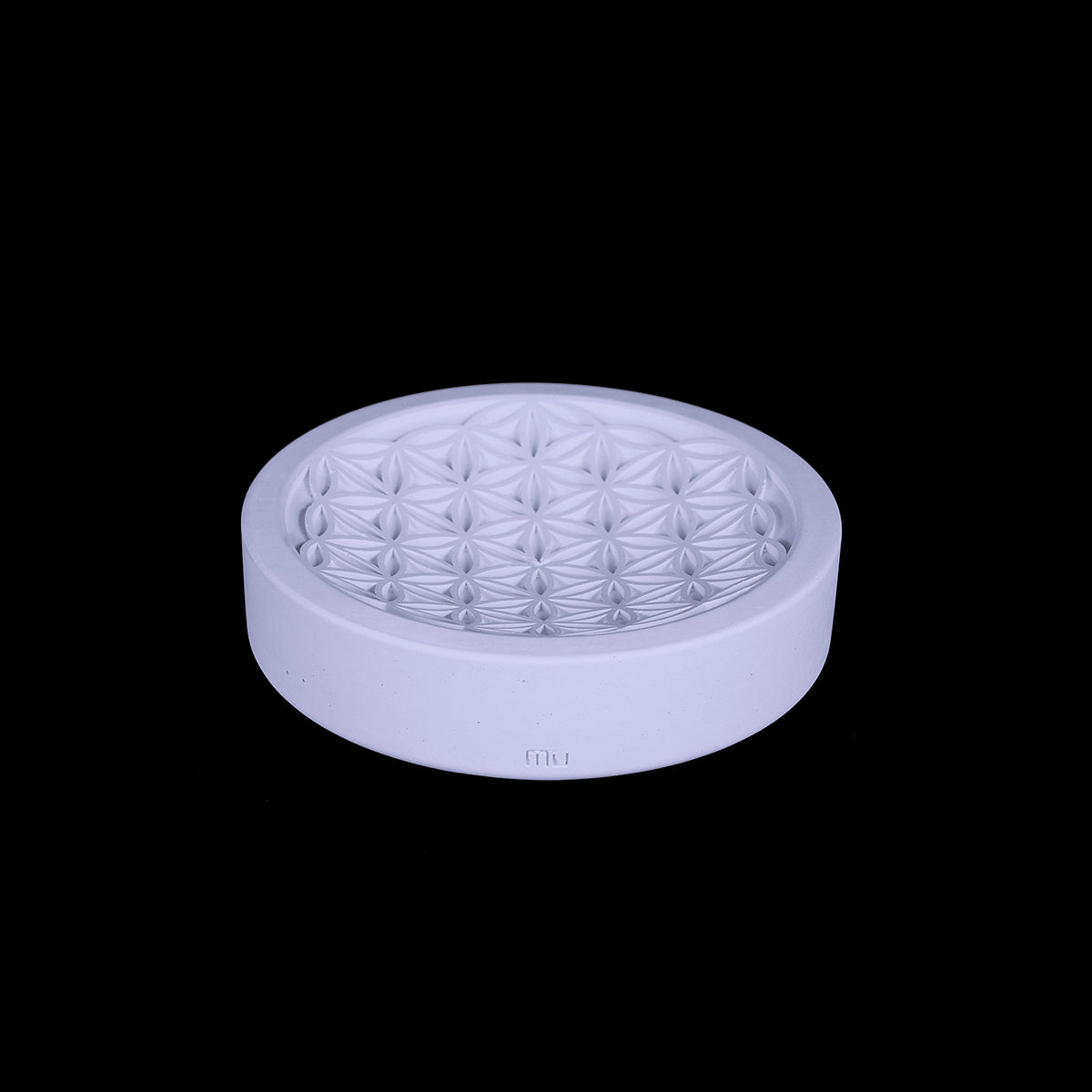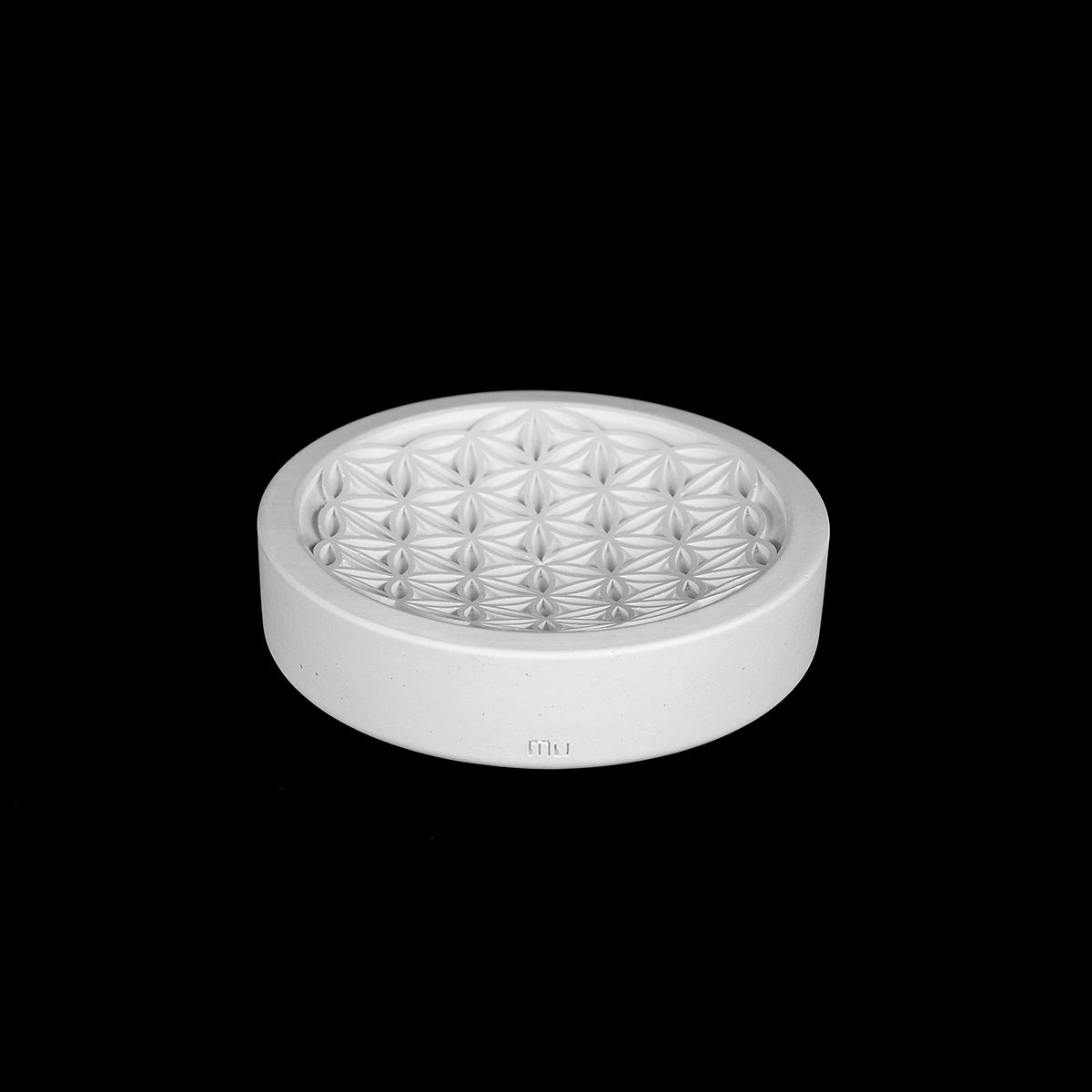The Mandala project emerged from an in-depth exploration of sacred geometries. This collection features incense holders and tea-light holders crafted from microcement, each embodying a 'sacred order' inherent in nature. The intricate designs of the Mandala pieces reflect the balance and harmony found in natural patterns and forms.