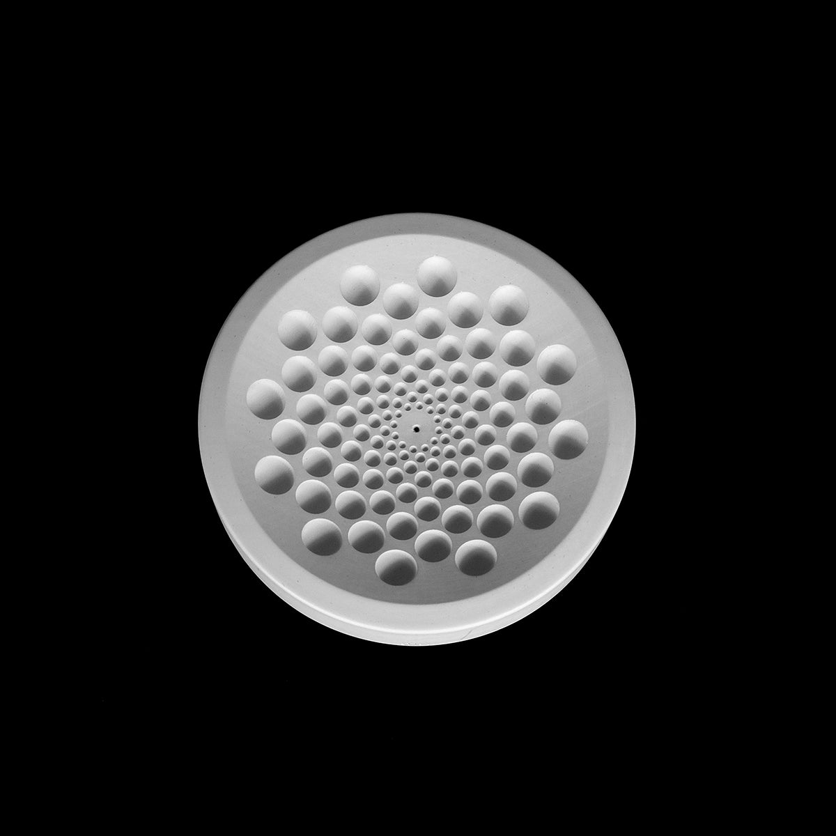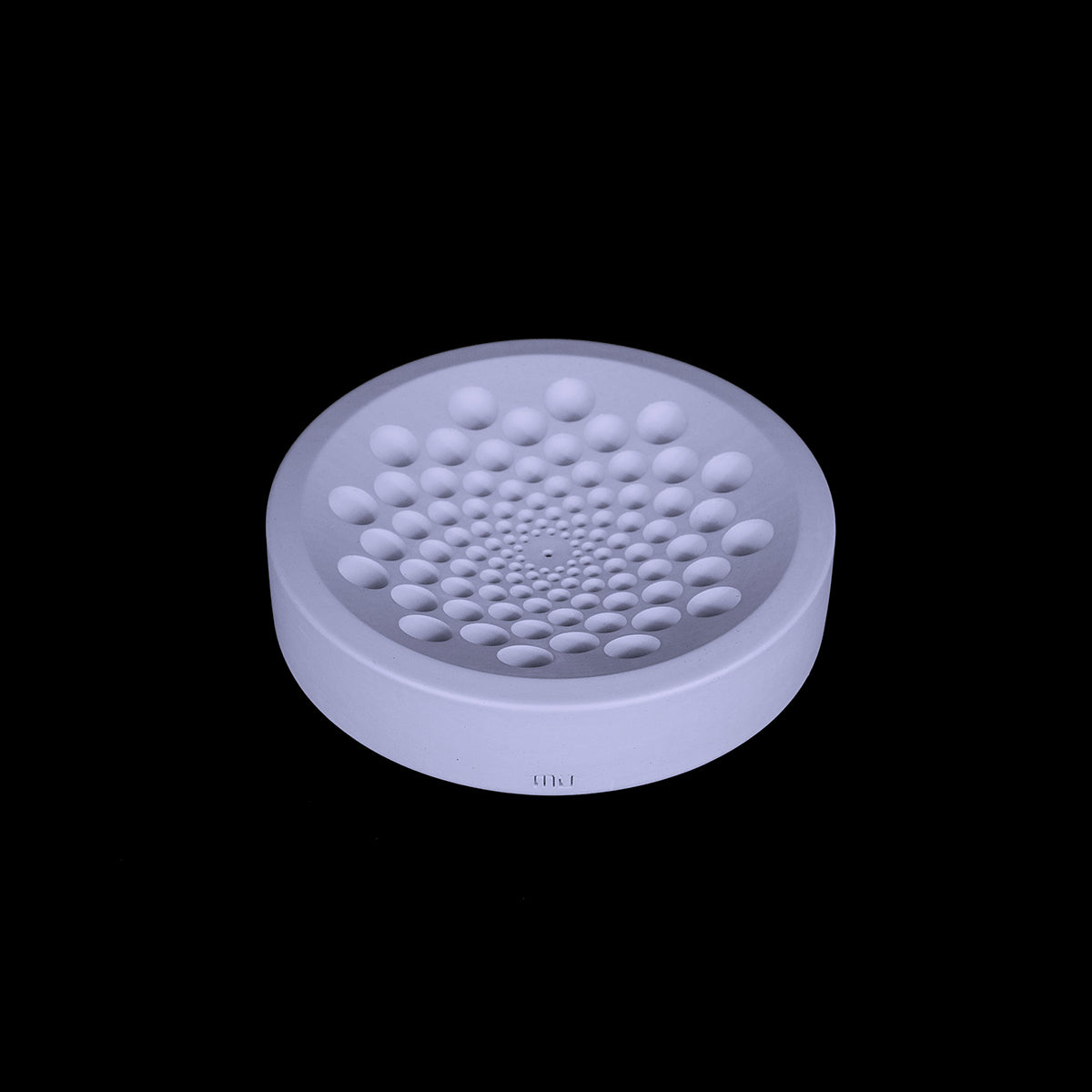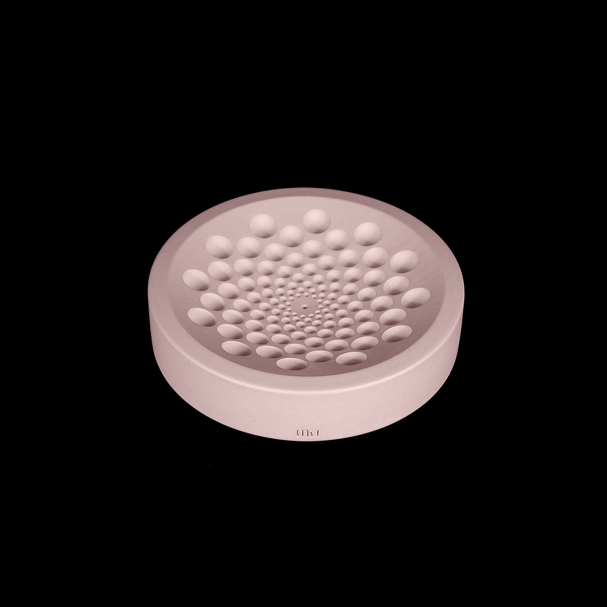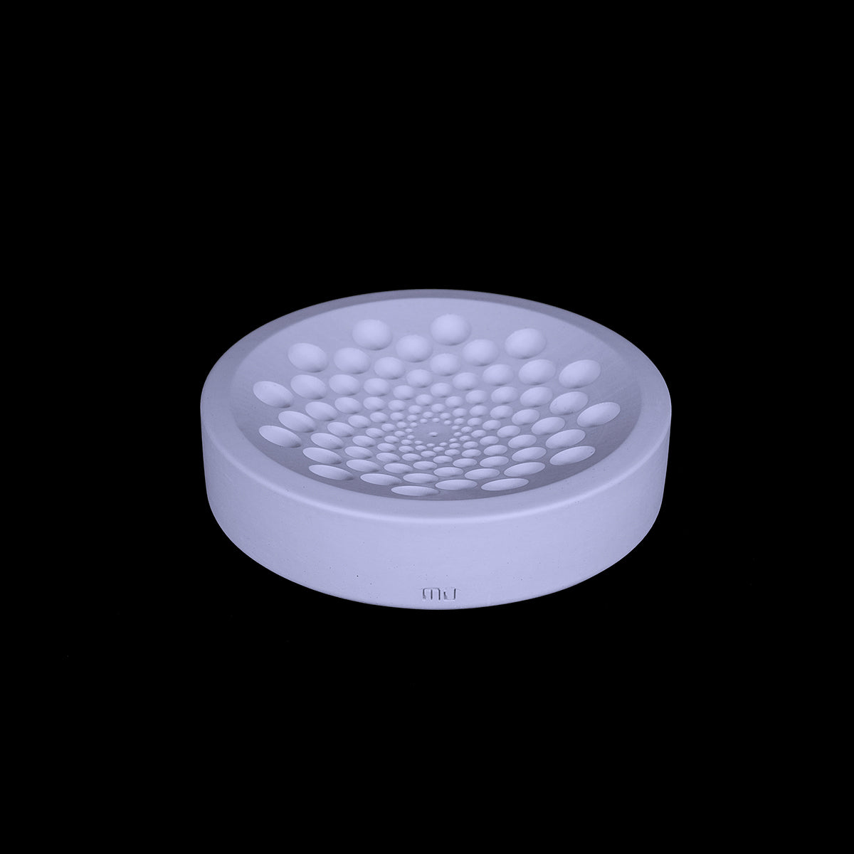 The Mandala project emerged from an in-depth exploration of sacred geometries. This collection features incense holders and tea-light holders crafted from microcement, each embodying a 'sacred order' inherent in nature. The intricate designs of the Mandala pieces reflect the balance and harmony found in natural patterns and forms.