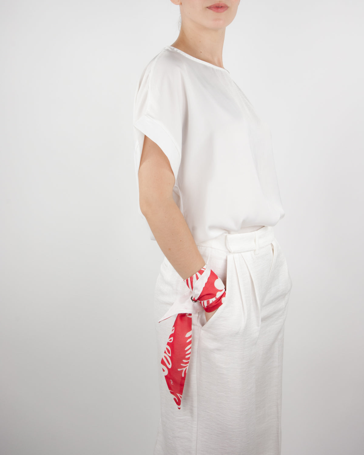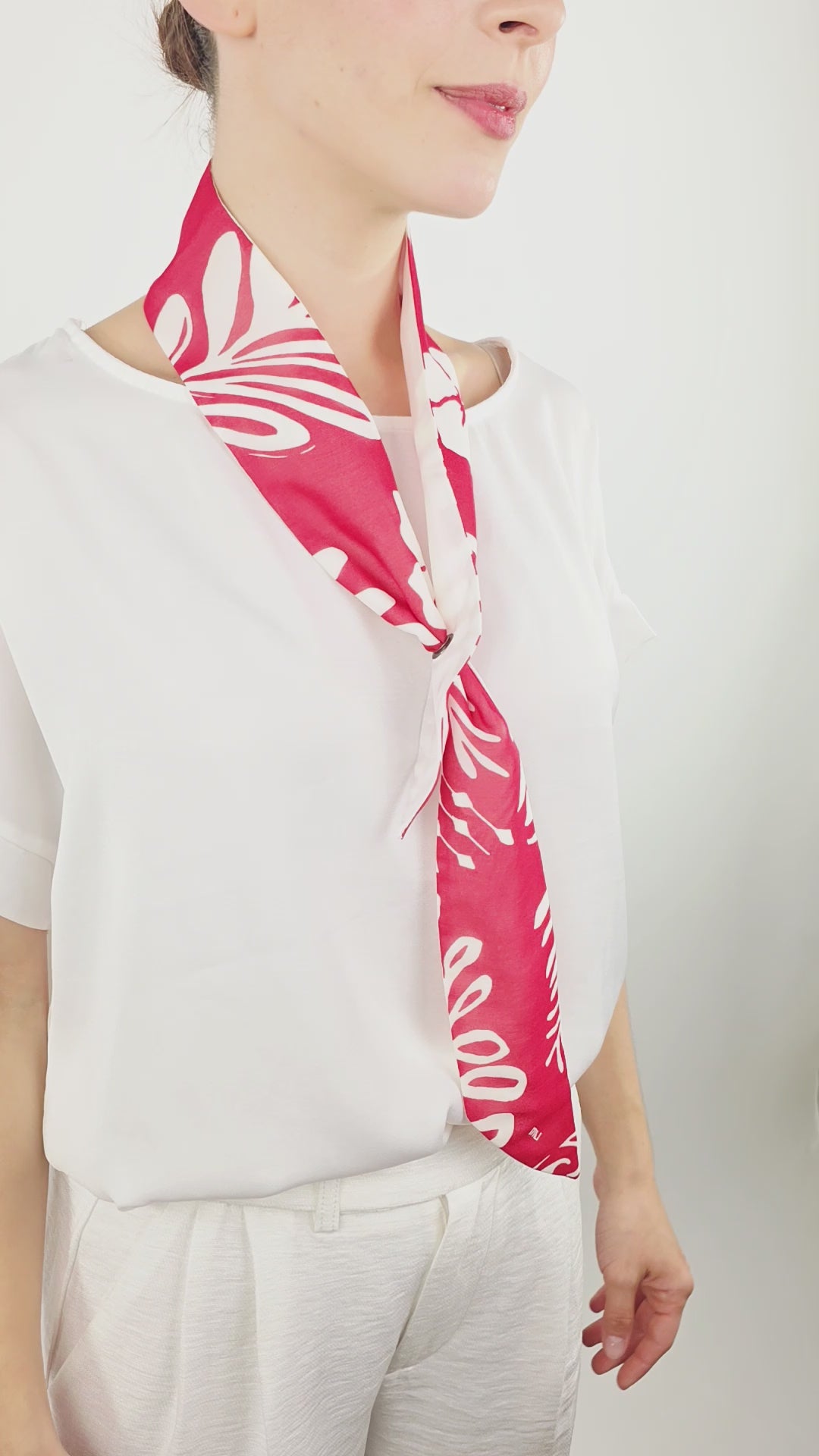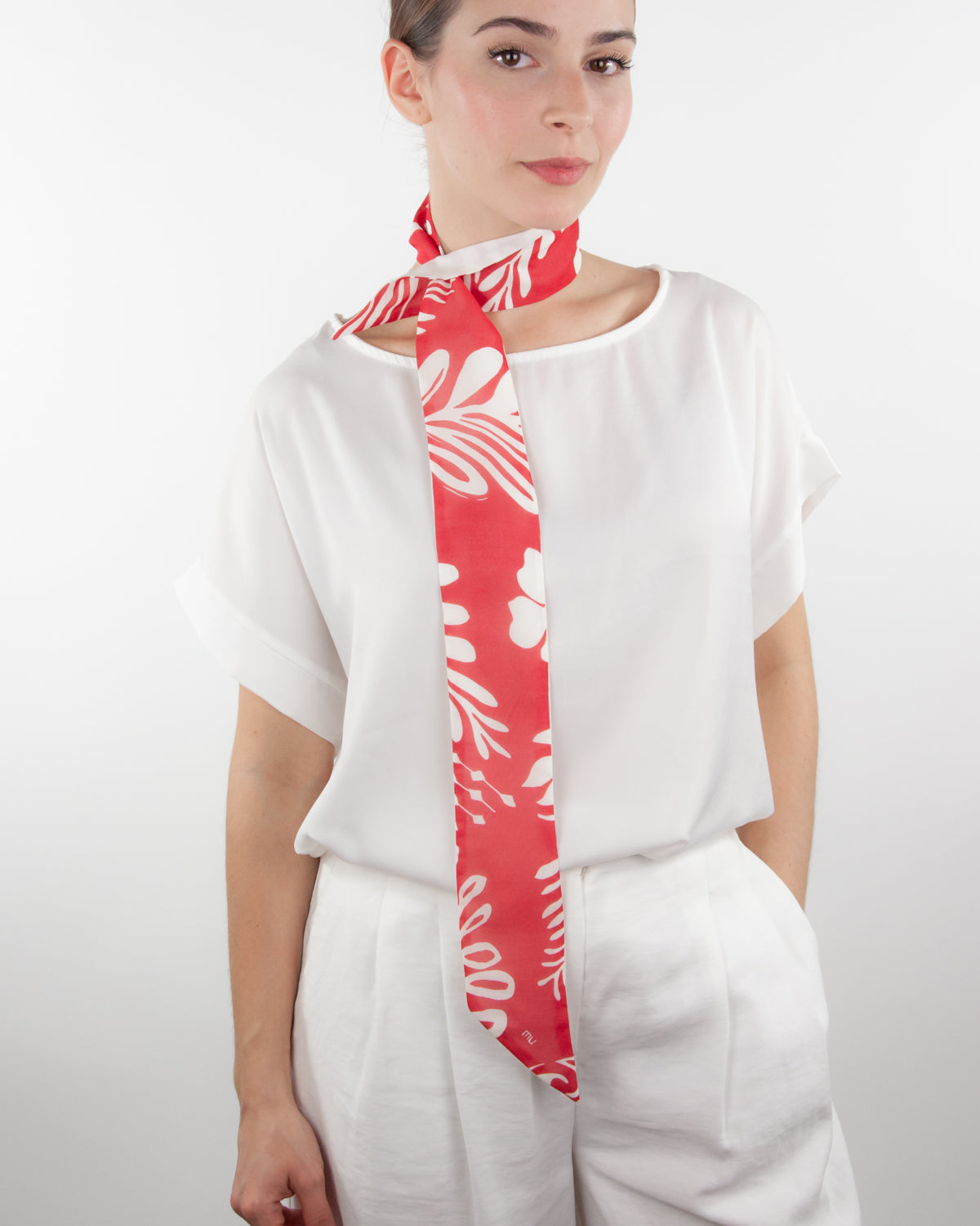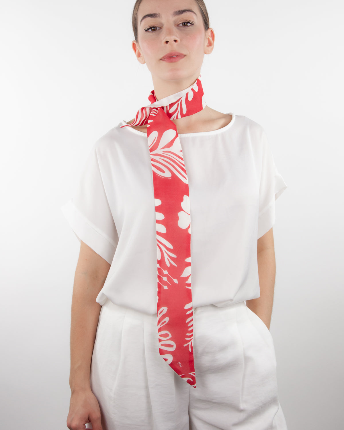 The versatile accessory that transforms your look. A small eyelet at one end allows the other to slip through-a simple gesture that offers multiple ways to wear it, without the need for tying. Light silk foulard. High-quality Sicilian tailoring. Limited edition.