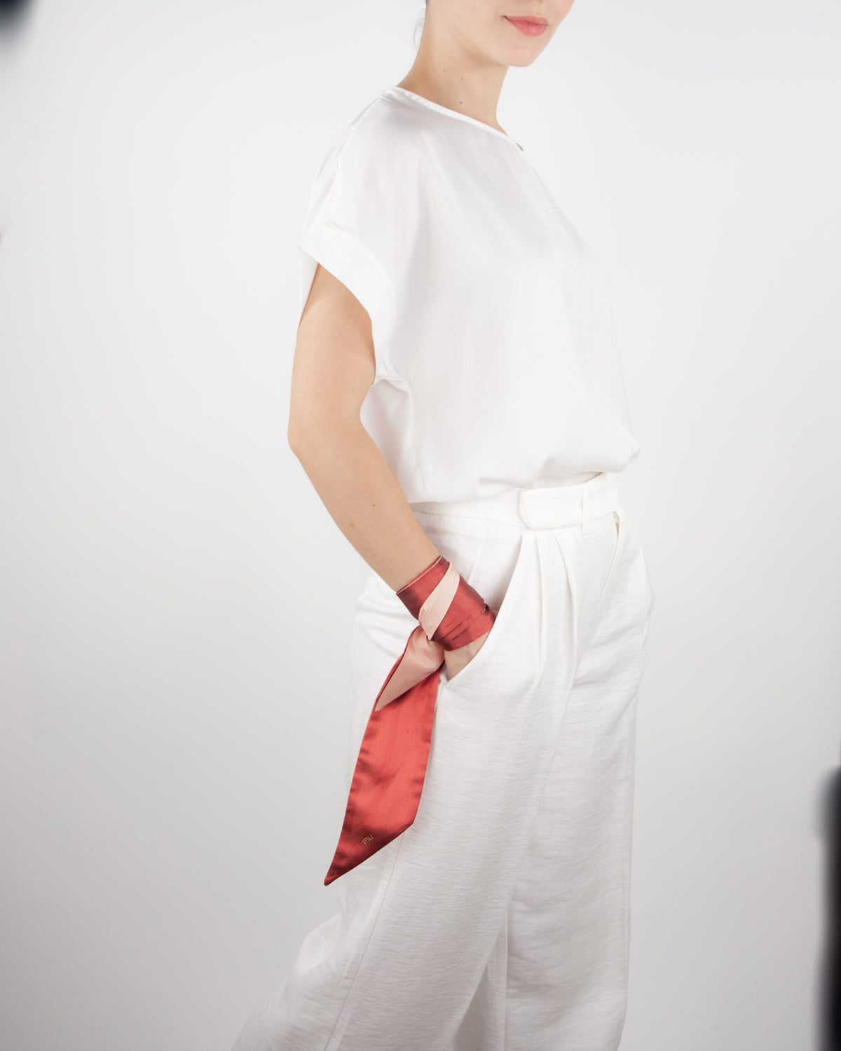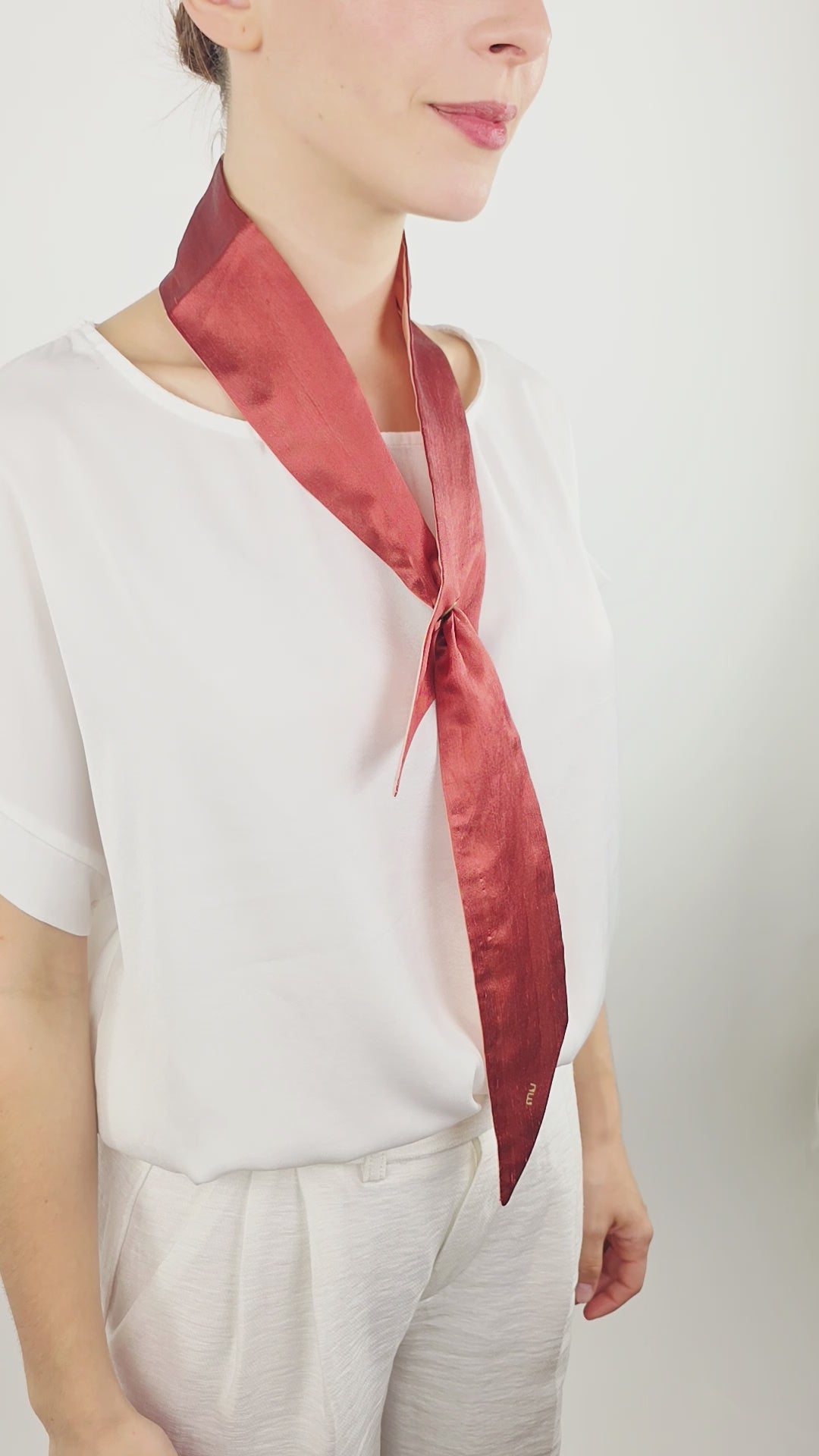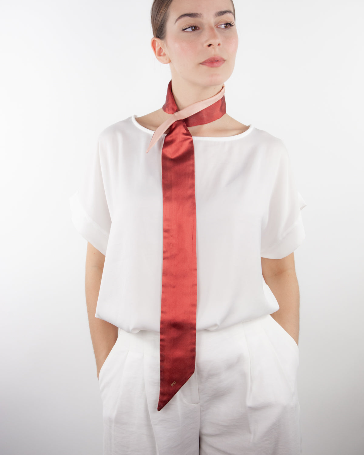 The versatile accessory that transforms your look. A small eyelet at one end allows the other to slip through-a simple gesture that offers multiple ways to wear it, without the need for tying. Light silk foulard. High-quality Sicilian tailoring. Limited edition.