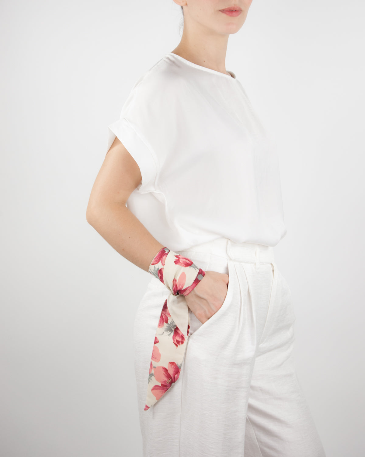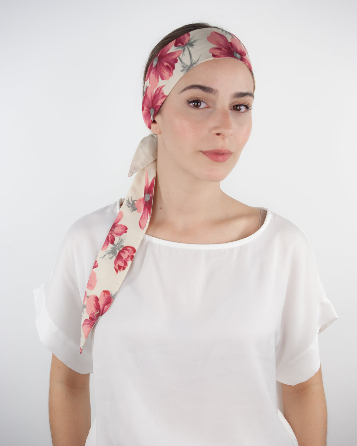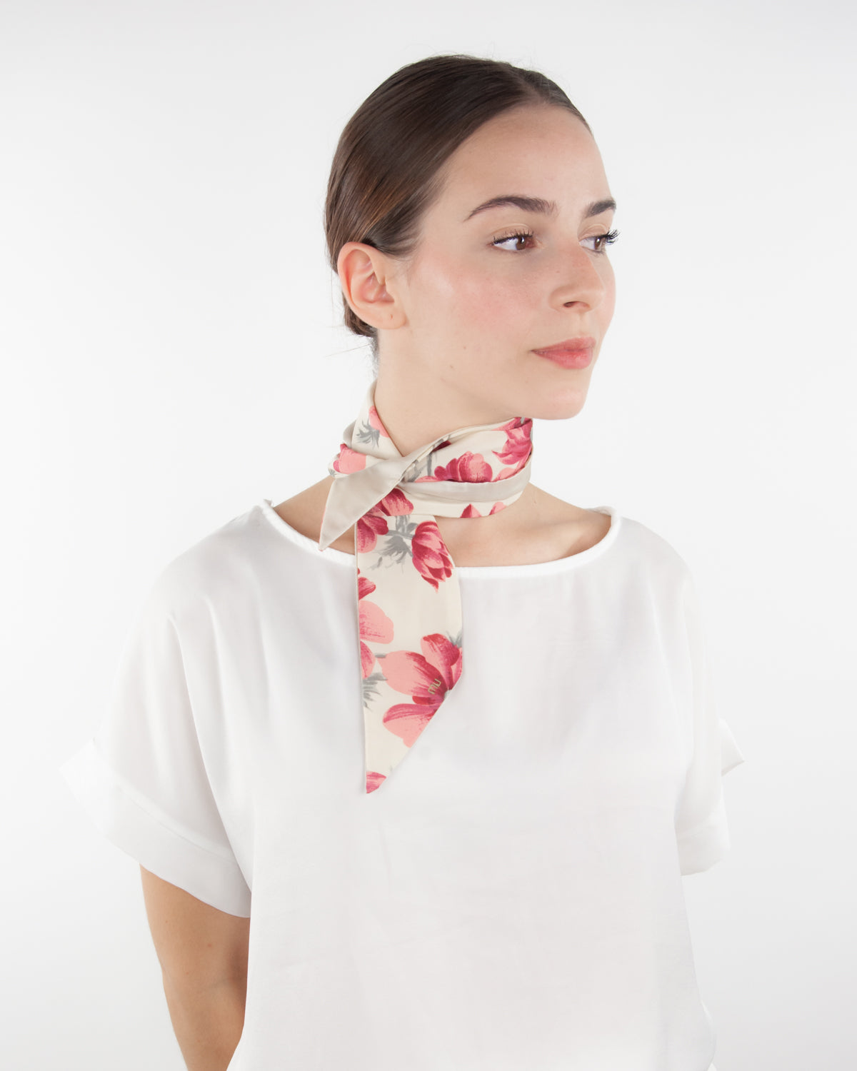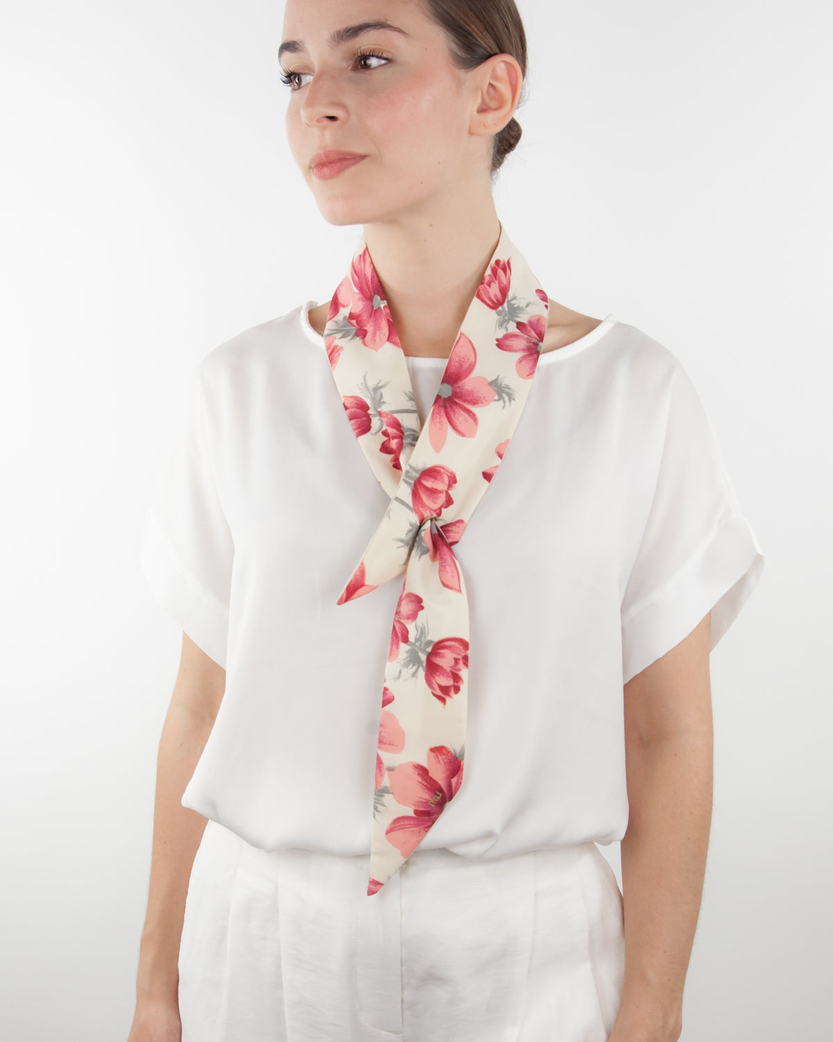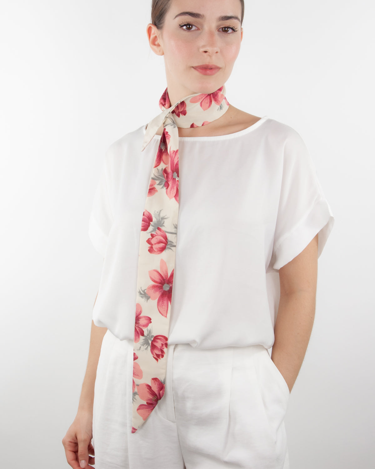 The versatile accessory that transforms your look. A small eyelet at one end allows the other to slip through-a simple gesture that offers multiple ways to wear it, without the need for tying. Light silk foulard. High-quality Sicilian tailoring. Limited edition.