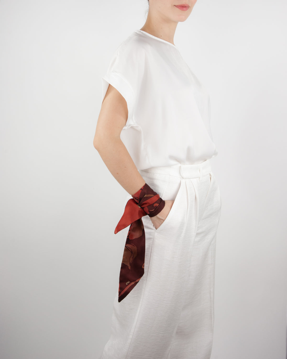 The versatile accessory that transforms your look. A small eyelet at one end allows the other to slip through-a simple gesture that offers multiple ways to wear it, without the need for tying. Light silk foulard. High-quality Sicilian tailoring. Limited edition.